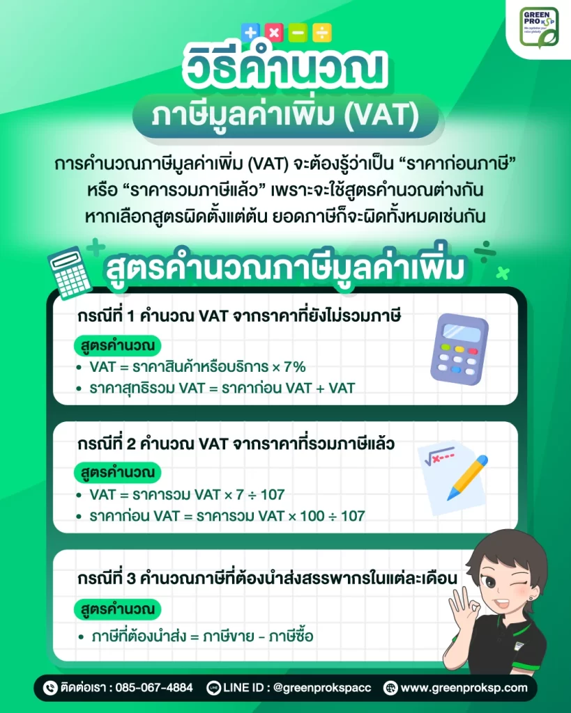 สูตรคือ ภาษีที่ต้องนำส่ง = ภาษีขาย – ภาษีซื้อ