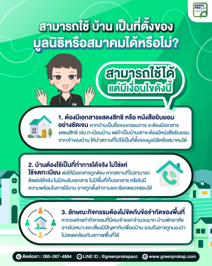 ใช้ที่อยู่บ้านเป็นที่ตั้งมูลนิธิหรือสมาคมได้หรือไม่