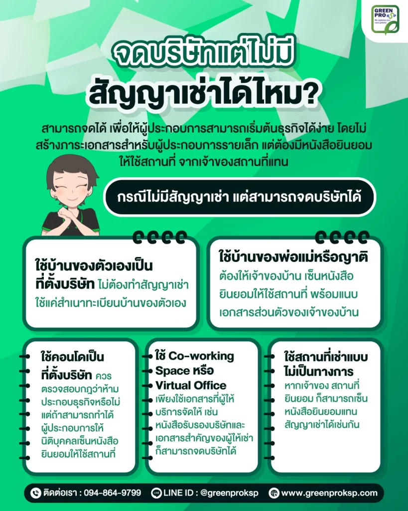 1. ไม่มีสัญญาเช่า สามารถจดบริษัทได้ไหม?
