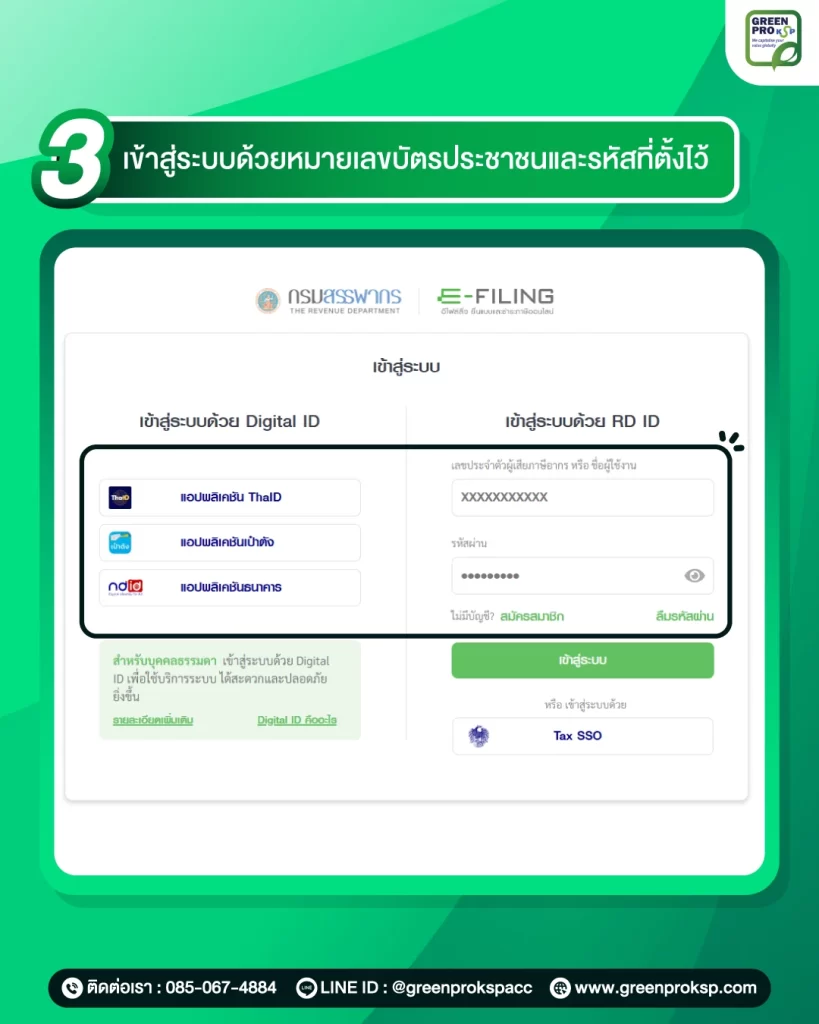1. เข้าสู่ระบบด้วยหมายเลขบัตรประชาชนและรหัสที่ตั้งไว้