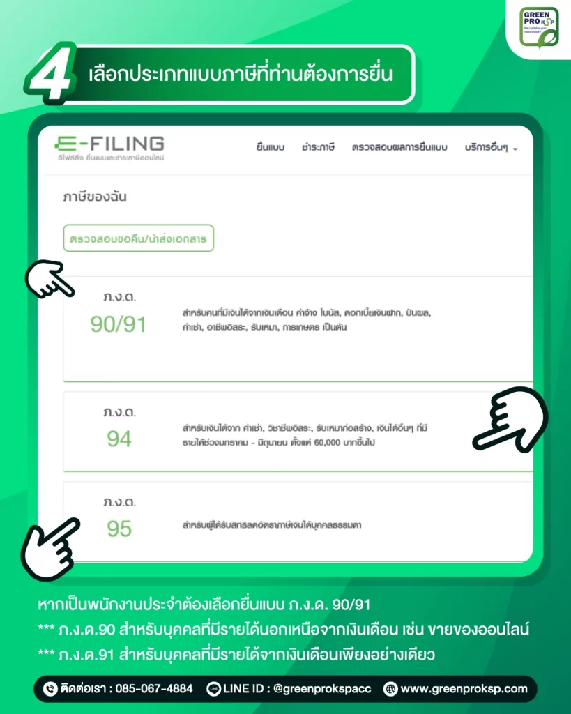 1. เลือกประเภทแบบภาษีที่ท่านต้องการยื่น