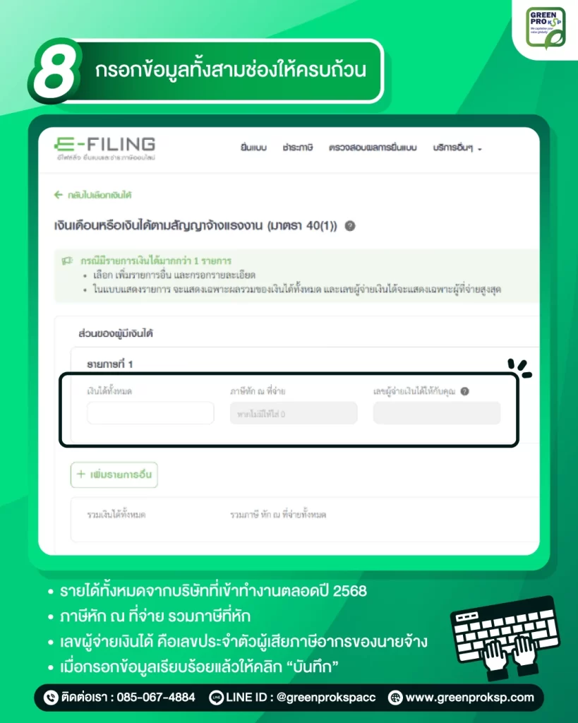 • รายได้ทั้งหมดจากบริษัทที่เข้าทำงานตลอดปี 2568