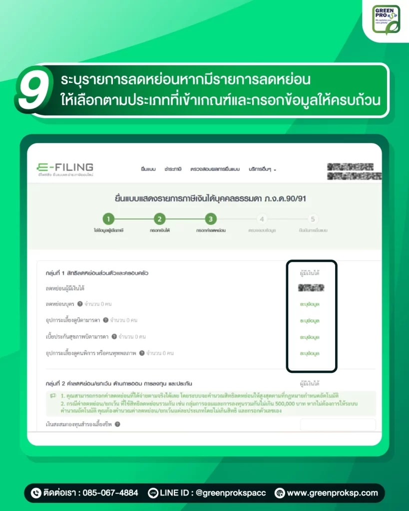 หากมีรายการลดหย่อน ให้เลือกตามประเภทที่เข้าเกรณ์และกรอกข้อมูลให้ครบถ้วน