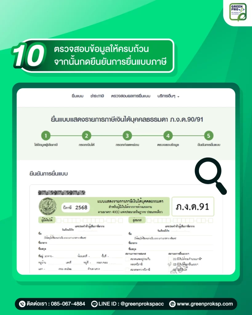 1. ตรวจสอบข้อมูลให้ครบถ้วน จากนั้นกดยืนยันการยื่นแบบภาษี
