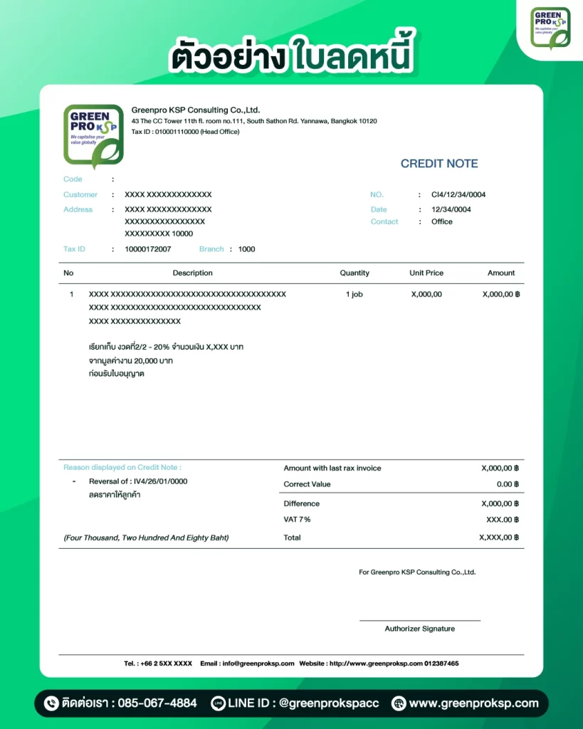 ตัวอย่างใบลดหนี้ (Credit Note)